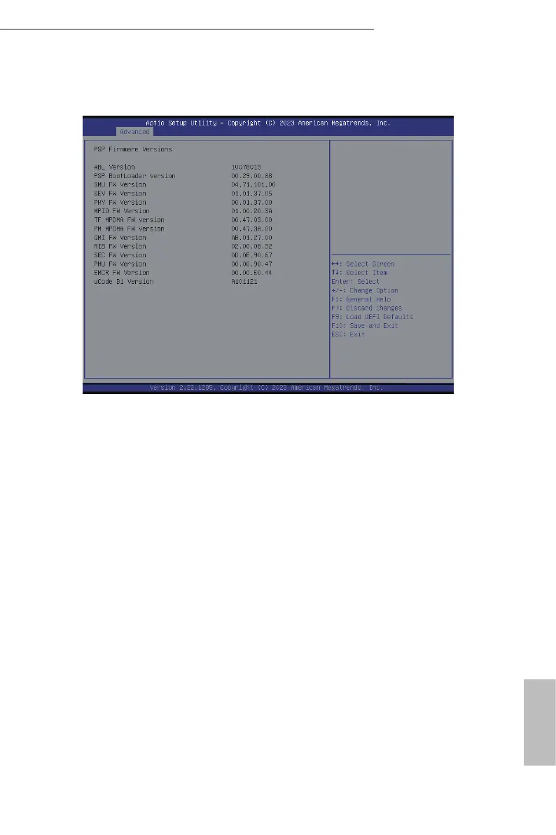 e PSP Firmware Verions displays the version information of ABL, PSP BootLoader,