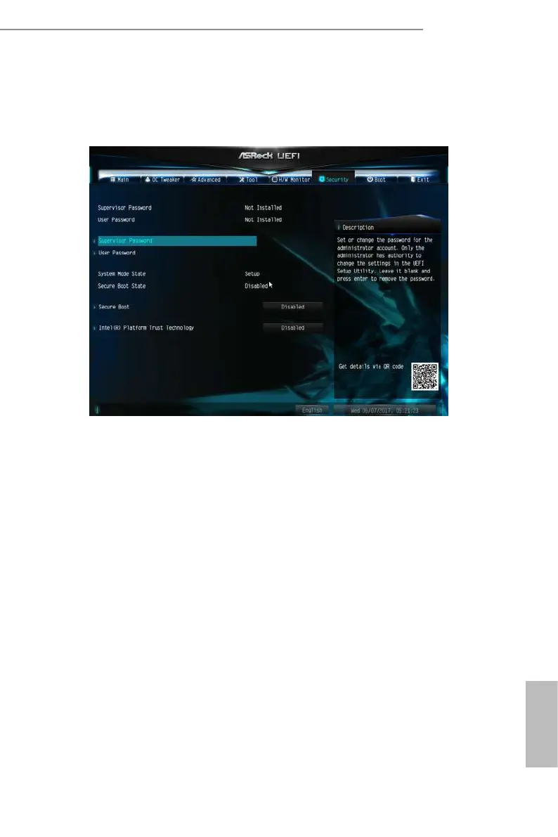 has authority to change the settings in the UEFI Setup Utility. Leave it blank and