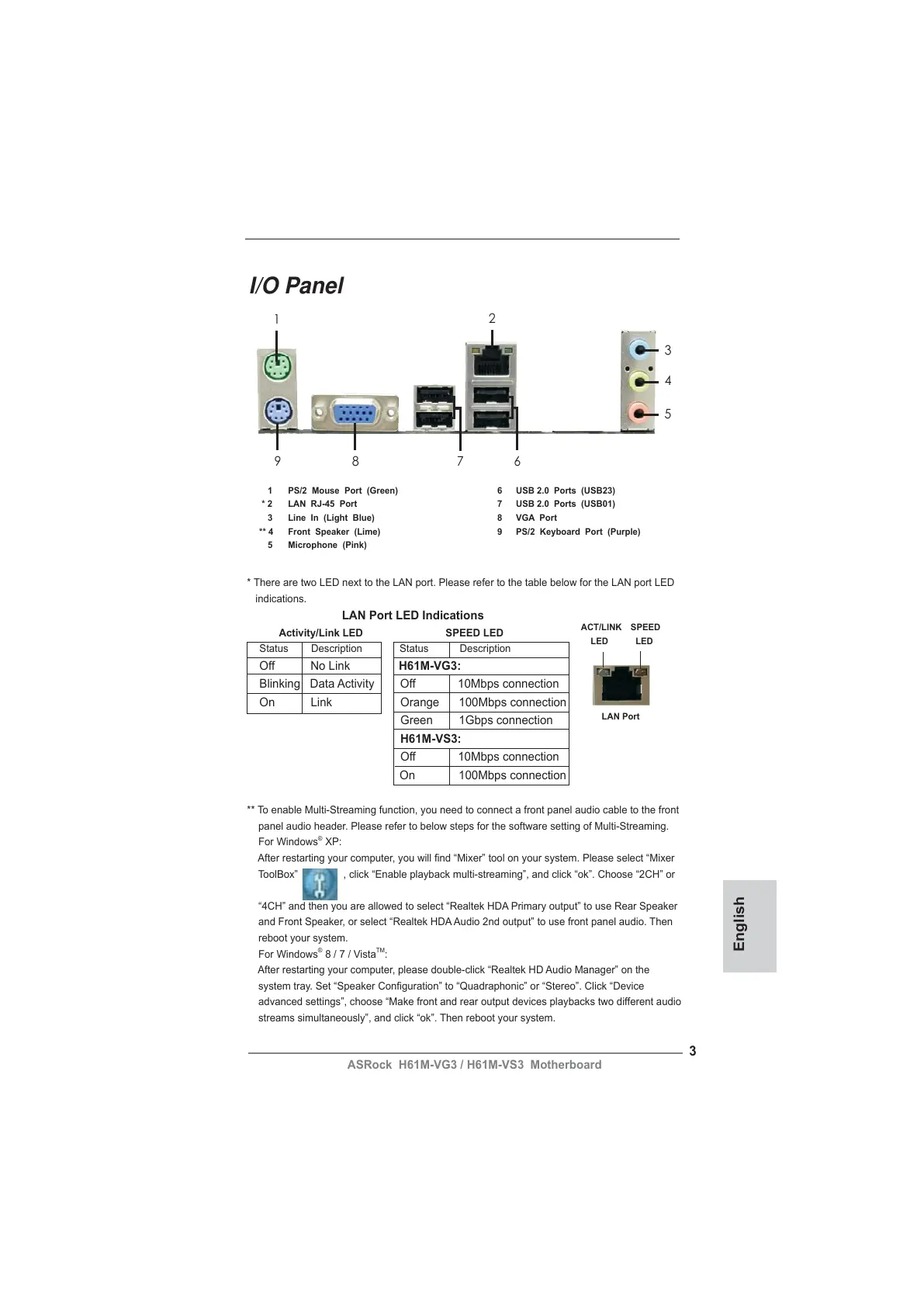 ASRock H61M-VG3 / H61M-VS3 Motherboard