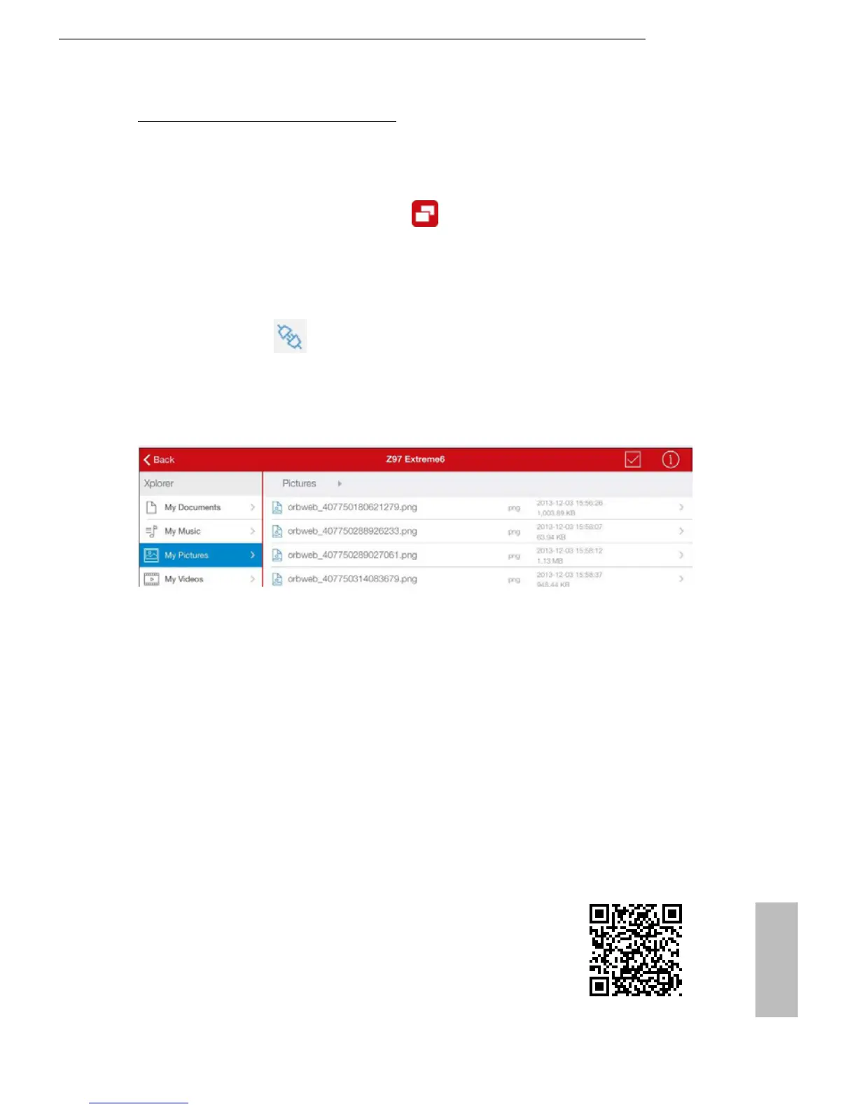 Tap a folder name under the Xplorer section and you can see the les in this folder.