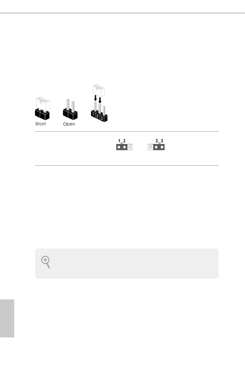 is “Open”. e illustration shows a 3-pin jumper whose pin1 and pin2 are “Short”