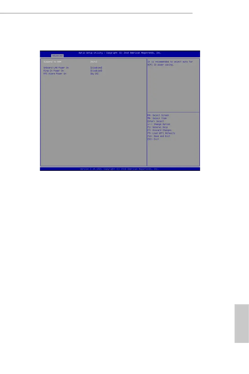 Select disable for ACPI suspend type S1. It is recommended to select auto for ACPI