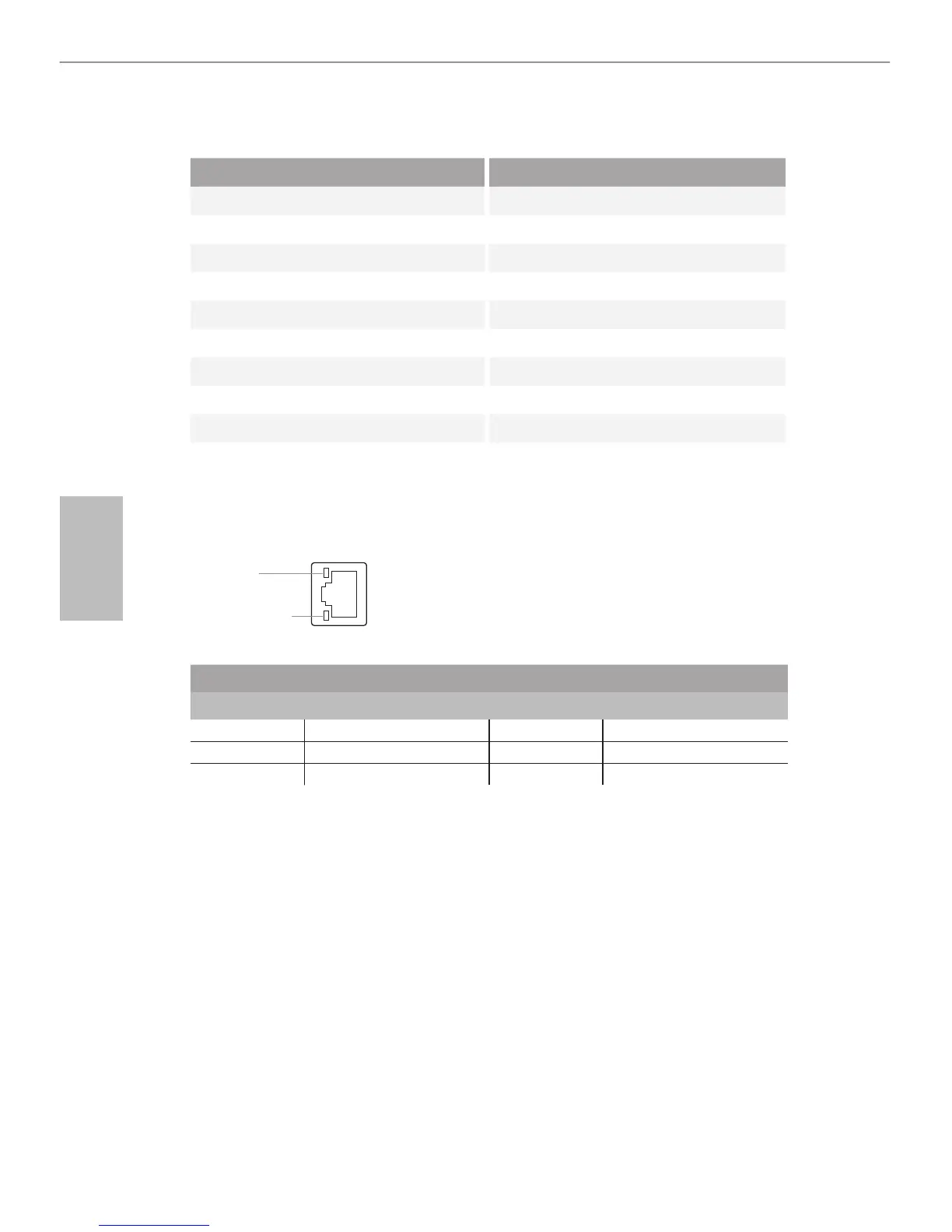 * Le port LAN possède deux voyants LED. Veuillez consulter le tableau ci-dessous pour plus de renseignements sur les