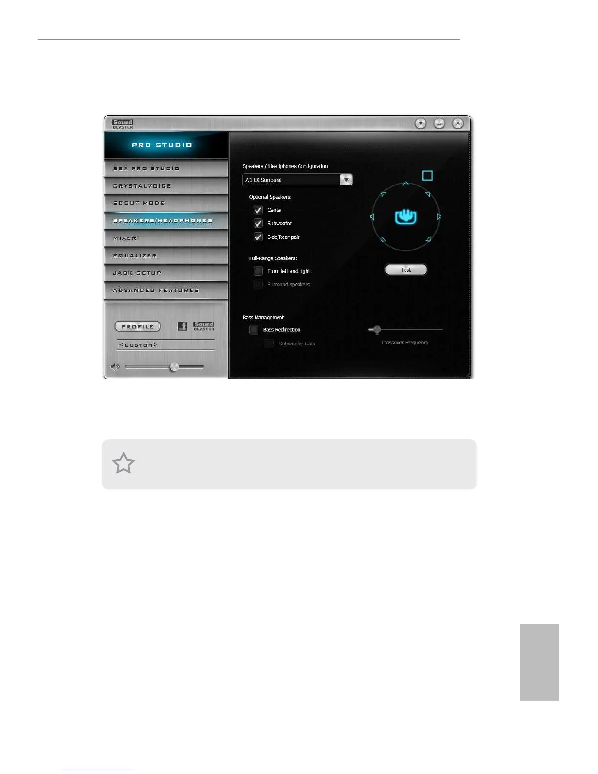 Enable or disable center speaker.