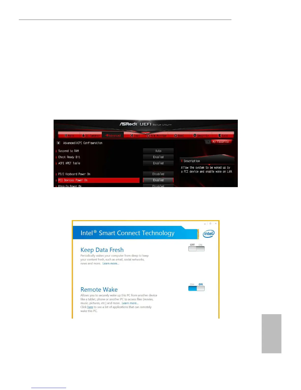 • Make sure that the "Remote Wake" is enabled in "Intel® Smart Connect
