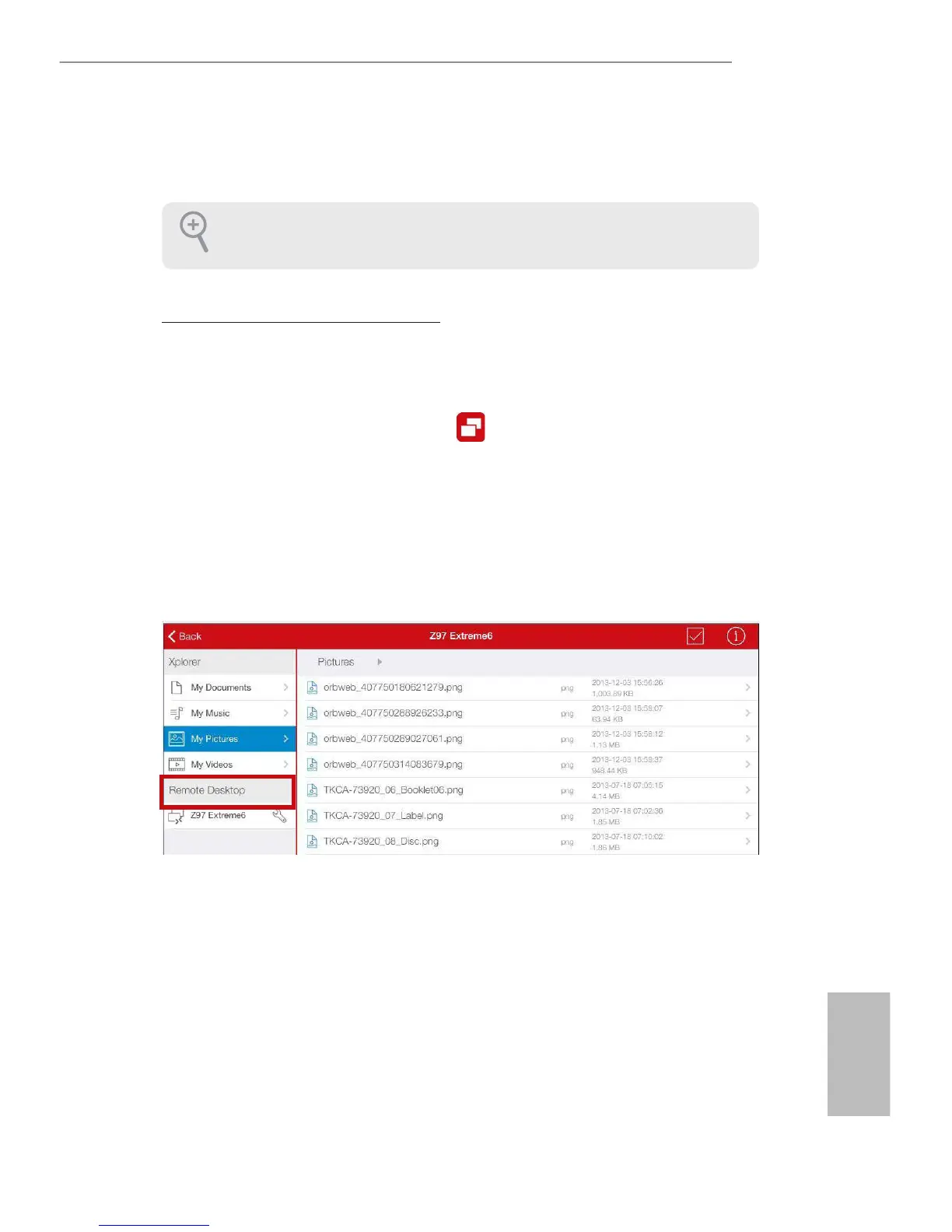 Tap the host computer name that you want to access under the Remote Desktop section.