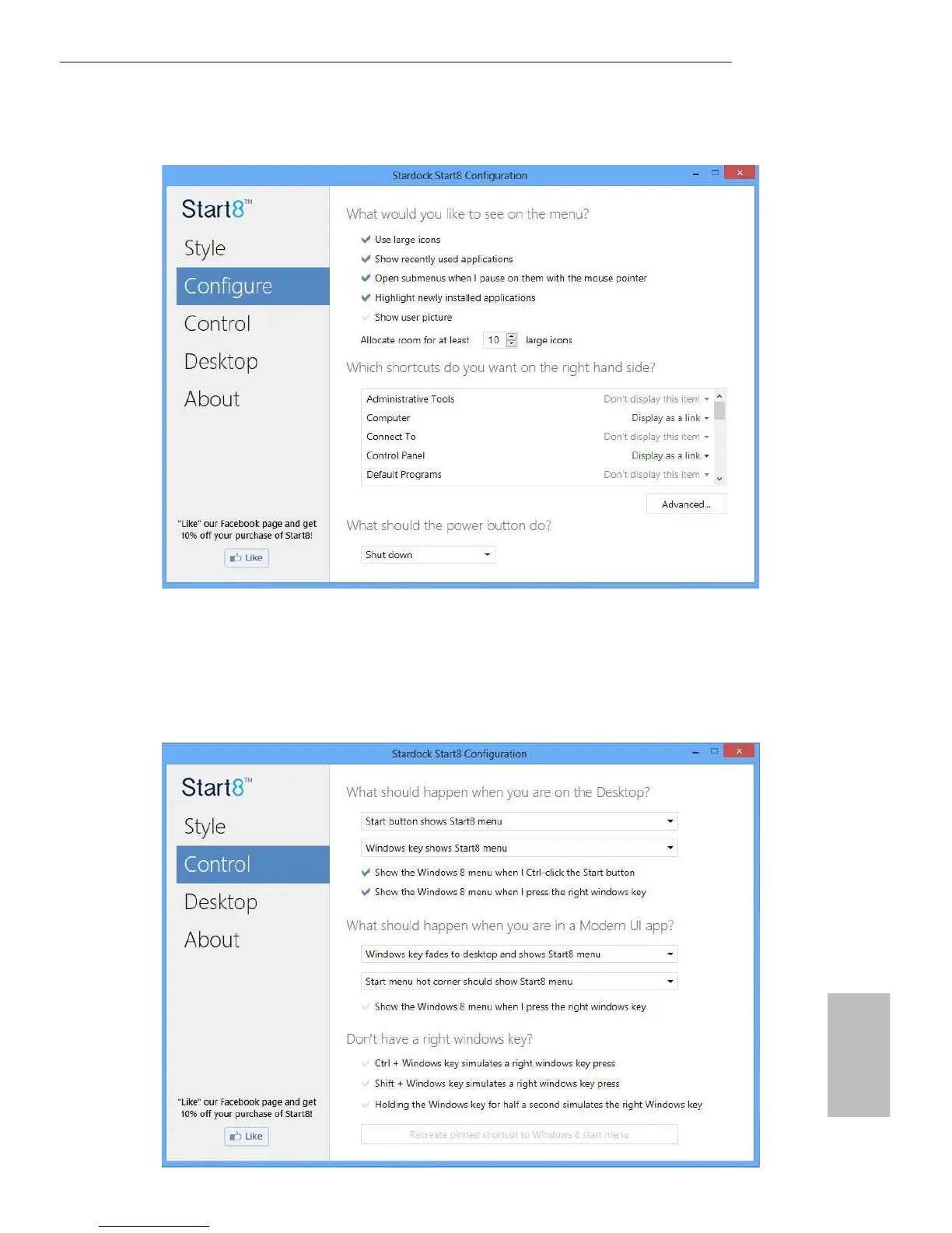  provides conguration options, including icon sizes, which shortcuts you