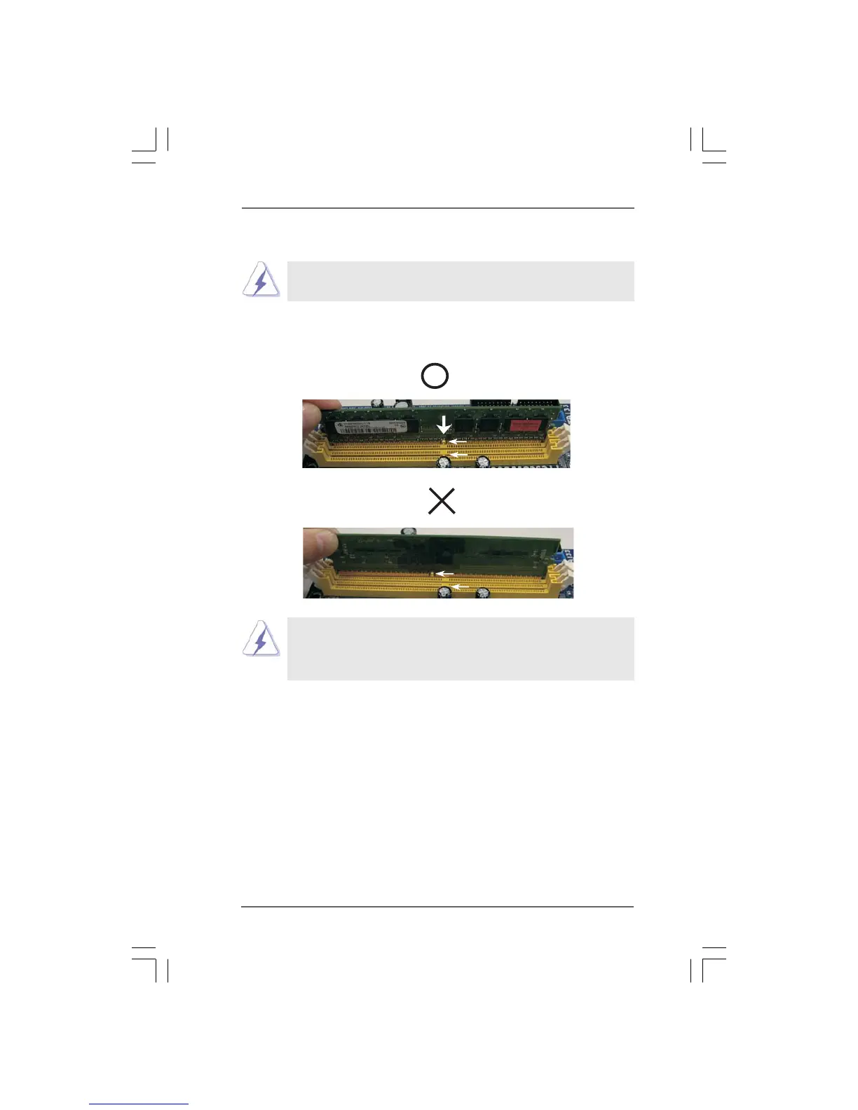 damage to the motherboard and the DIMM if you force the DIMM into the