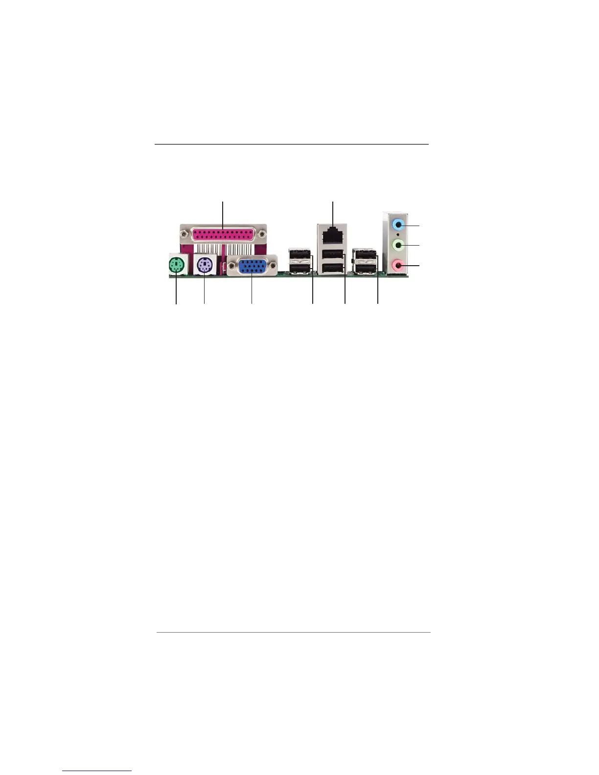 4 Line Out (Lime) 10 PS/2 Keyboard Port (Purple)