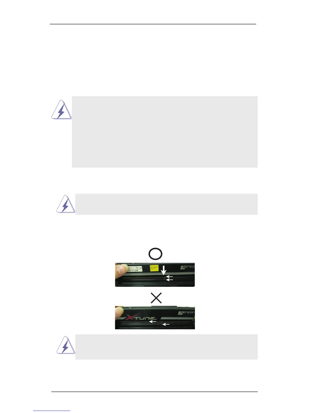 1. It is not allowed to install a DDR or DDR2 memory module into a