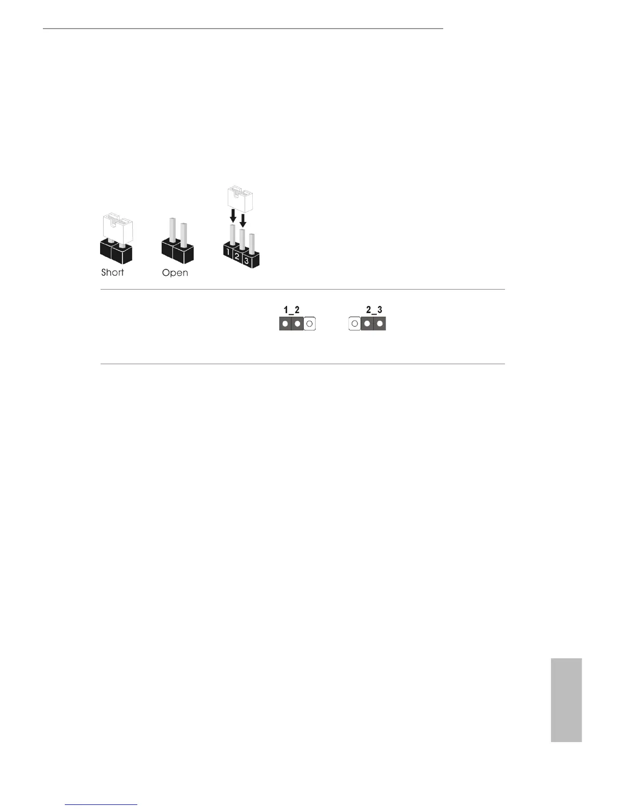 is “Open”. e illustration shows a 3-pin jumper whose pin1 and pin2 are “Short”