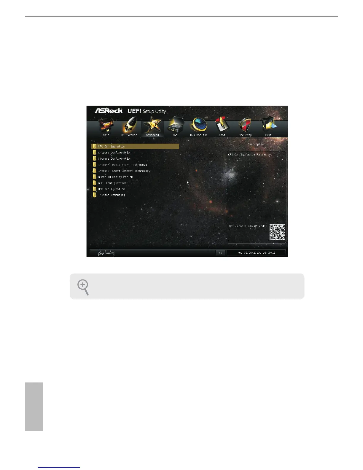 In this section, you may set the congurations for the following items: CPU
