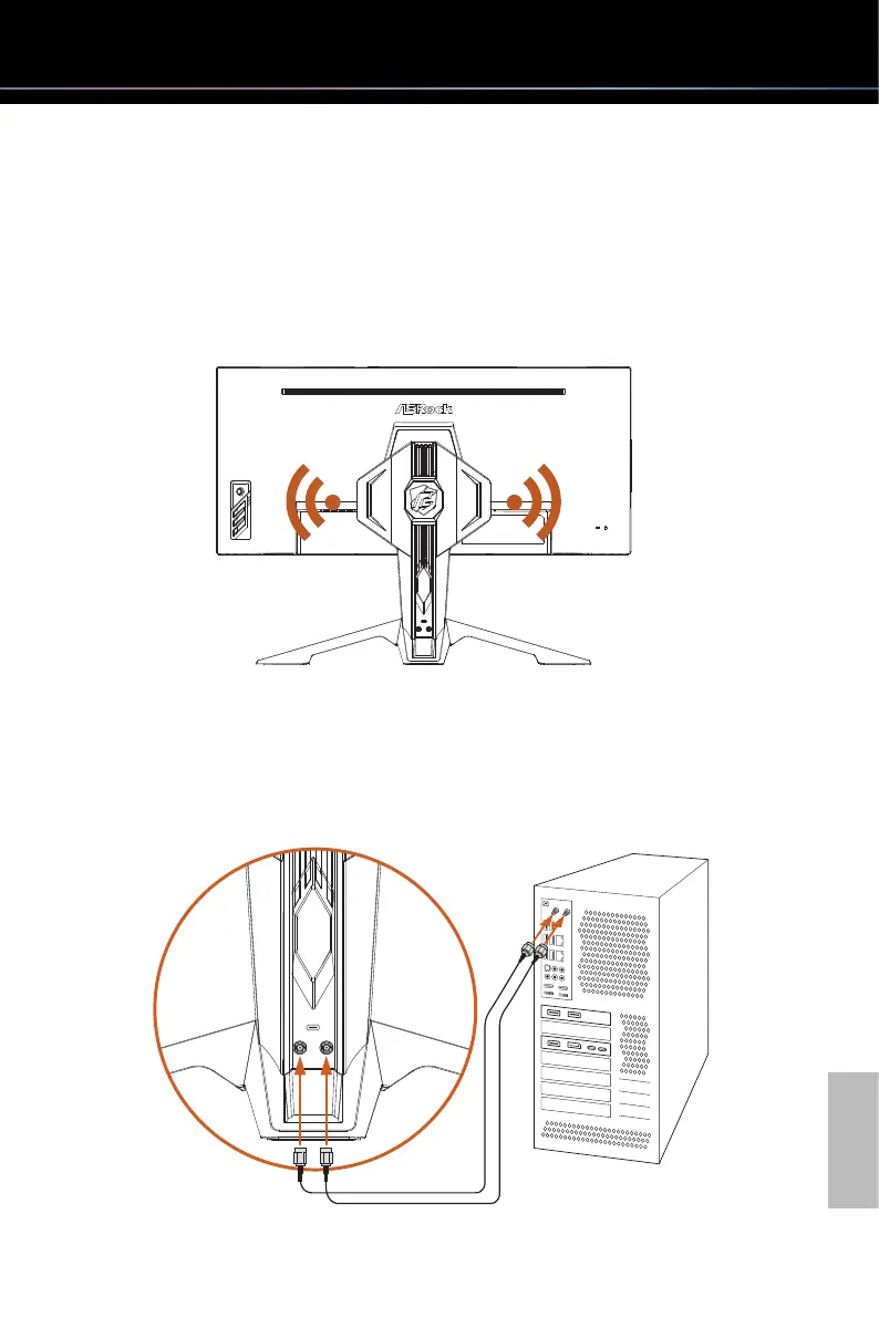Two antenna ports are located on the back of the monitor stand. Connect one end of the