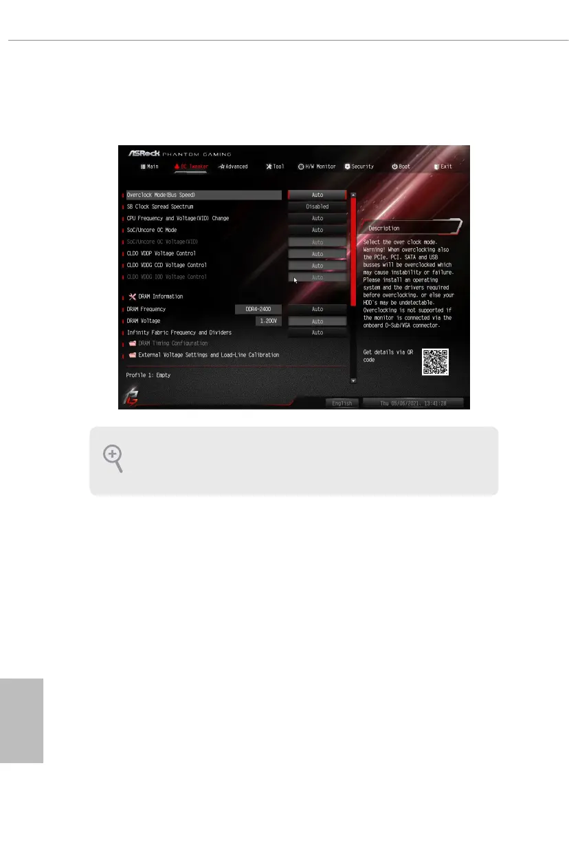 Select the overclock mode. Warning! When overclocking also the PCIe, PCI, SATA and