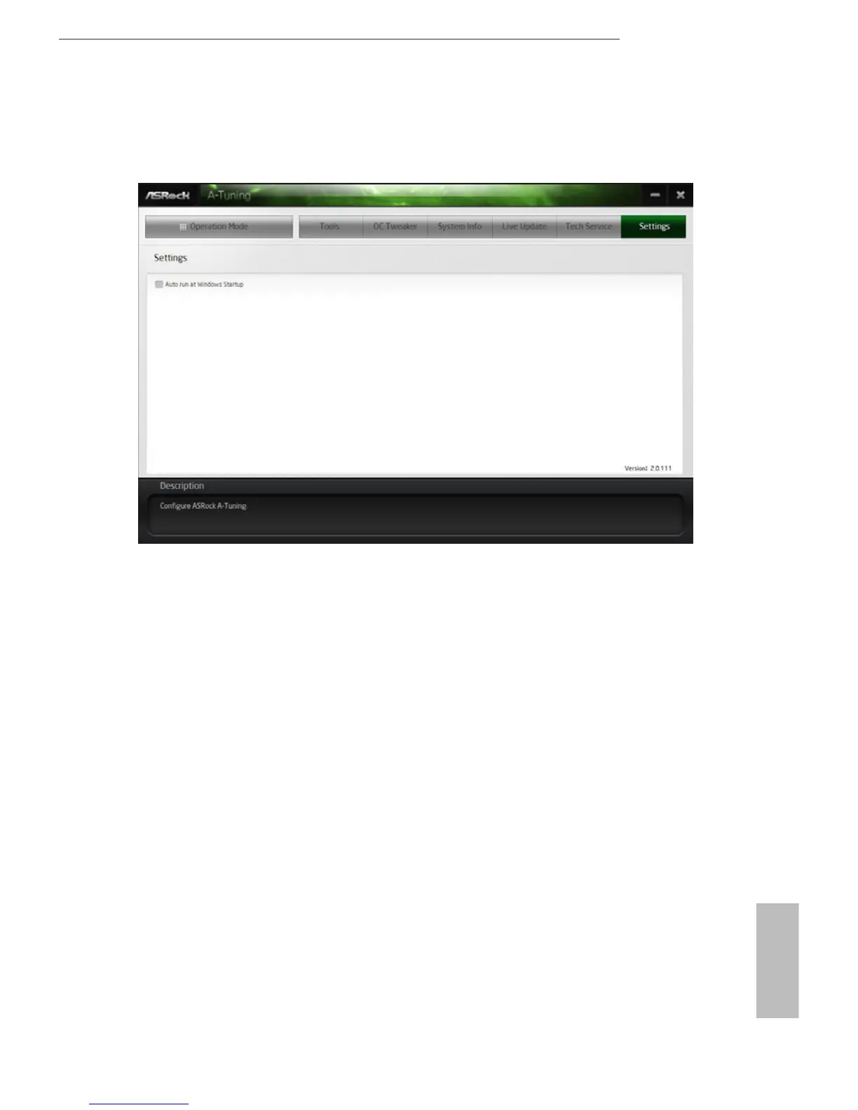 Congure ASRock A-Tuning. Click to select "Auto run at Windows Startup" if you