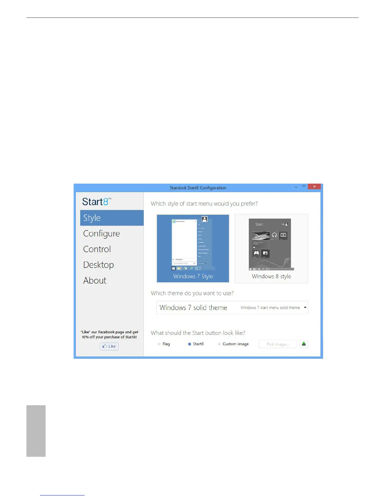 Select between the Windows 7 style and Windows 8 style Start Menu. en select