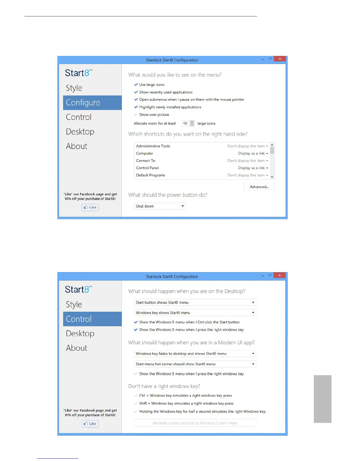Congure provides conguration options, including icon sizes, which shortcuts you