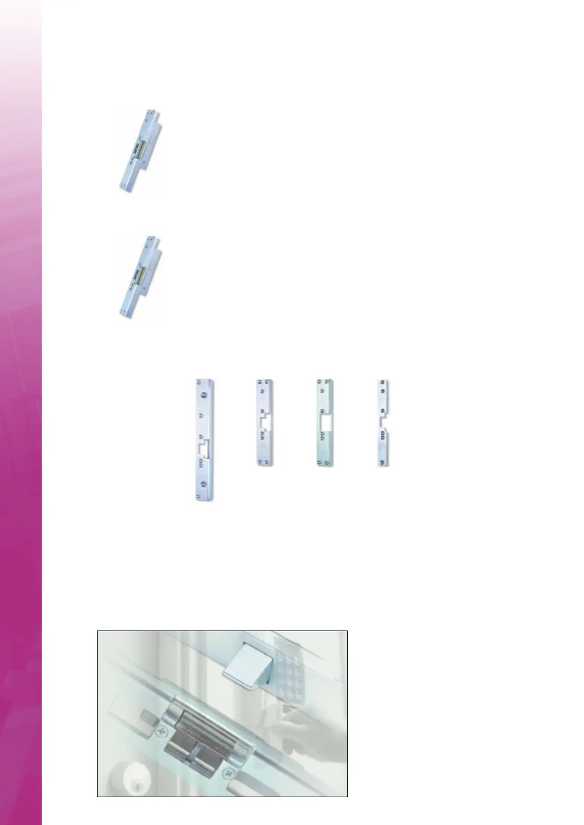 500 kg is applied. Microswitch monitors latchbolt engagement. Very high strength, resists 1,300 kg
