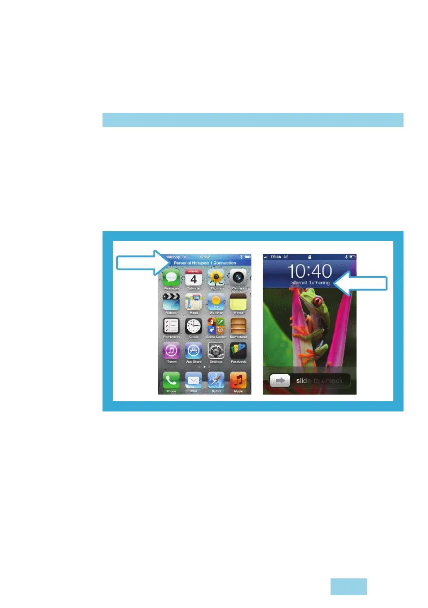 2 Validate that the Personal Hotspot is active in the iPhone.