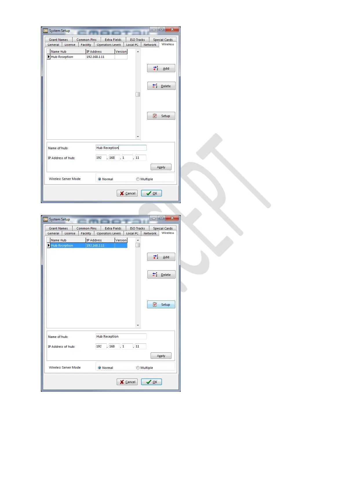Select the newly added hub and click on Setup.