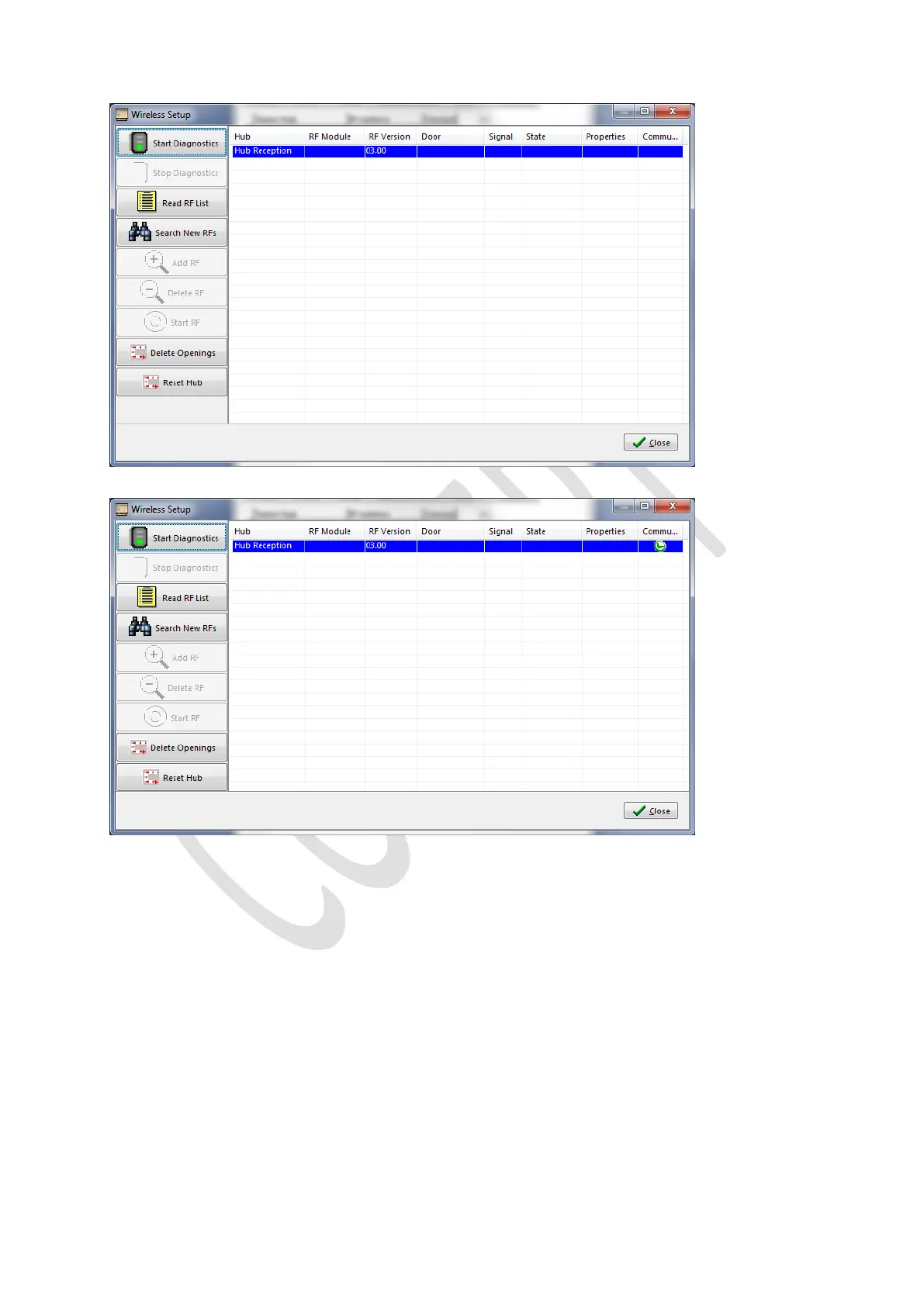 First we click on Start Diagnostics to make sure we can still communicate with the hub as this is not shown at the moment.