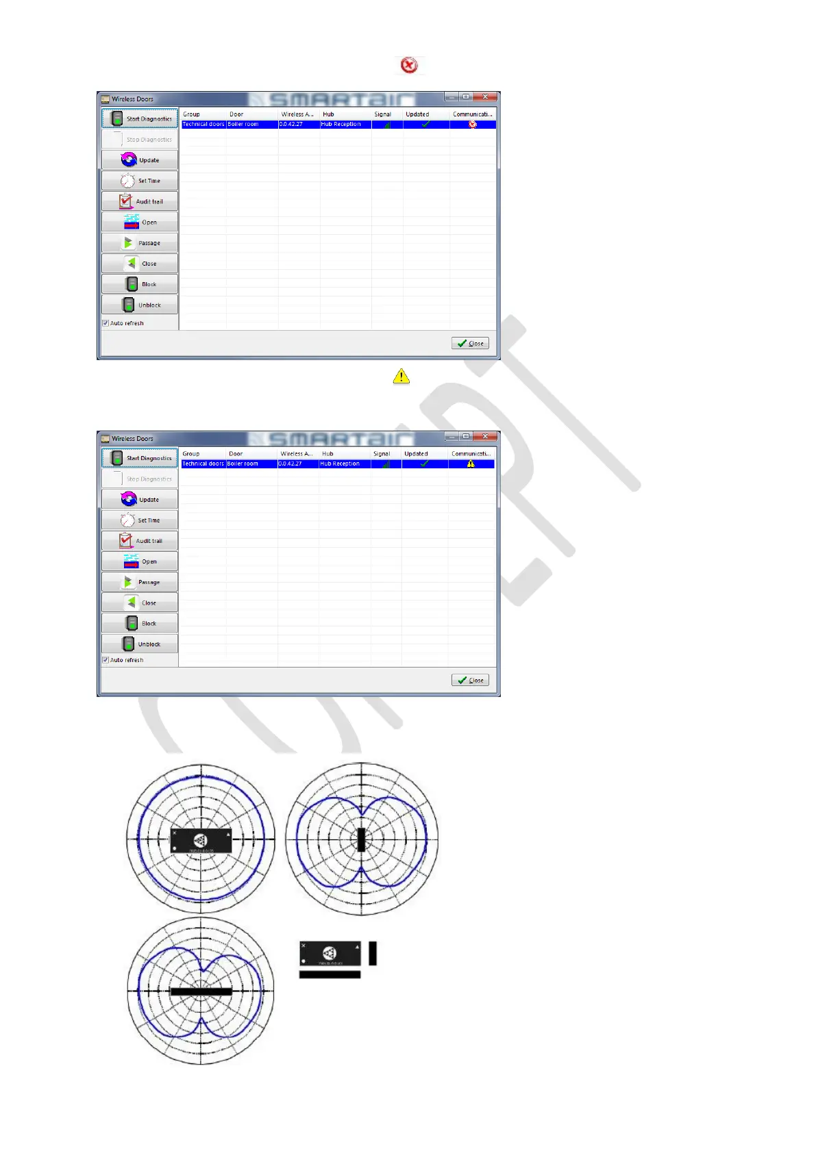 In the Wireless menu, if we Start Diagnostics and we see , this means there is no communication from hub to the