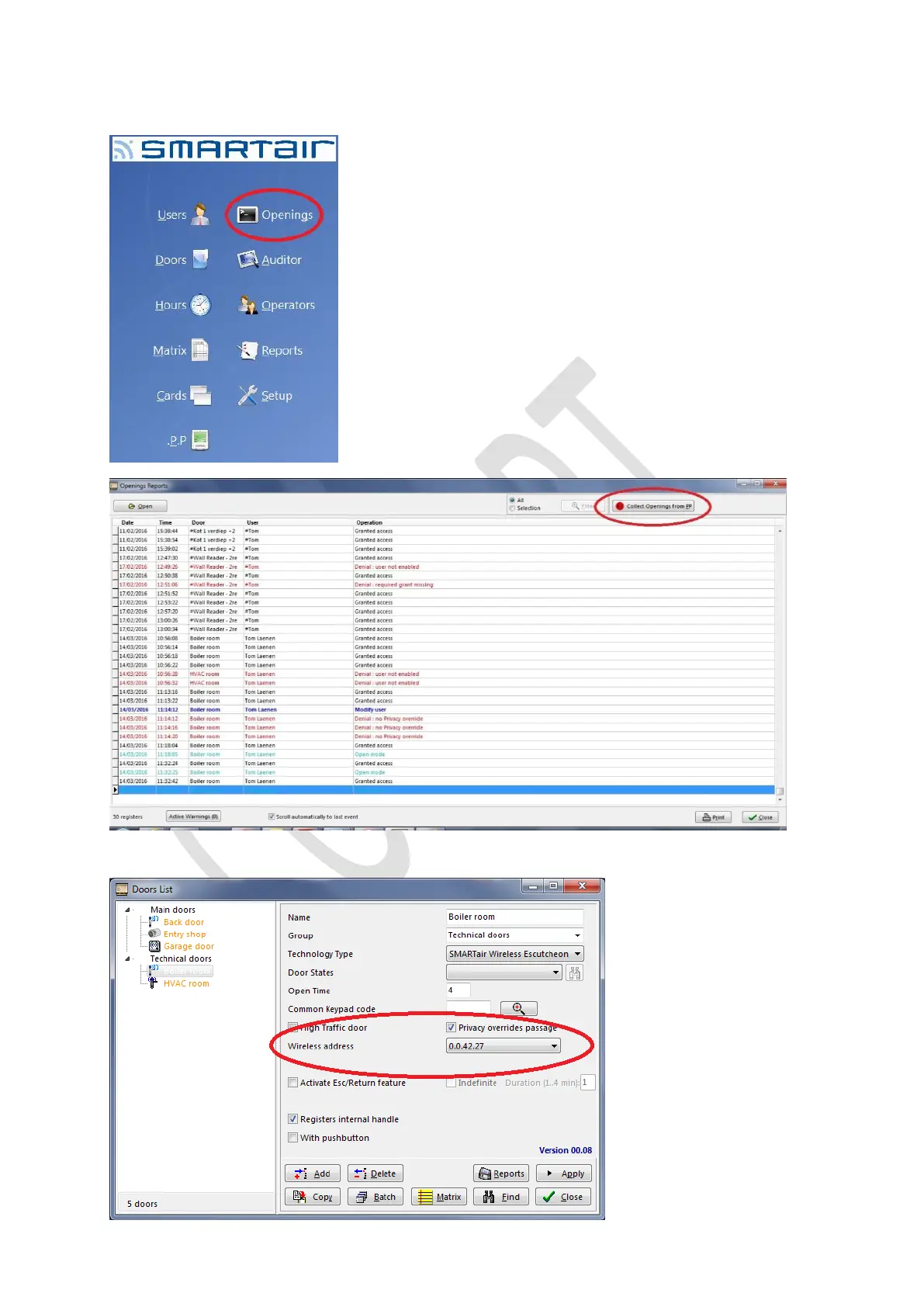 After you initialized the device, connect the PP to the software and open the “Openings” menu and select “Collect openings