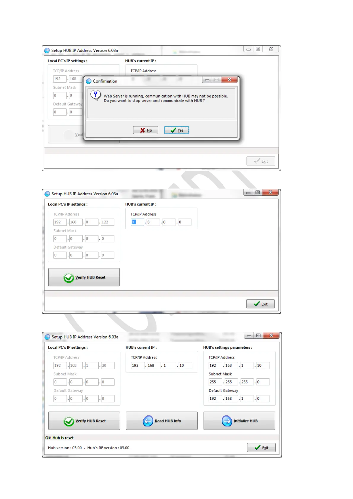 Reset the hub and click on the Verify HUB Reset button. See procedure point 8
