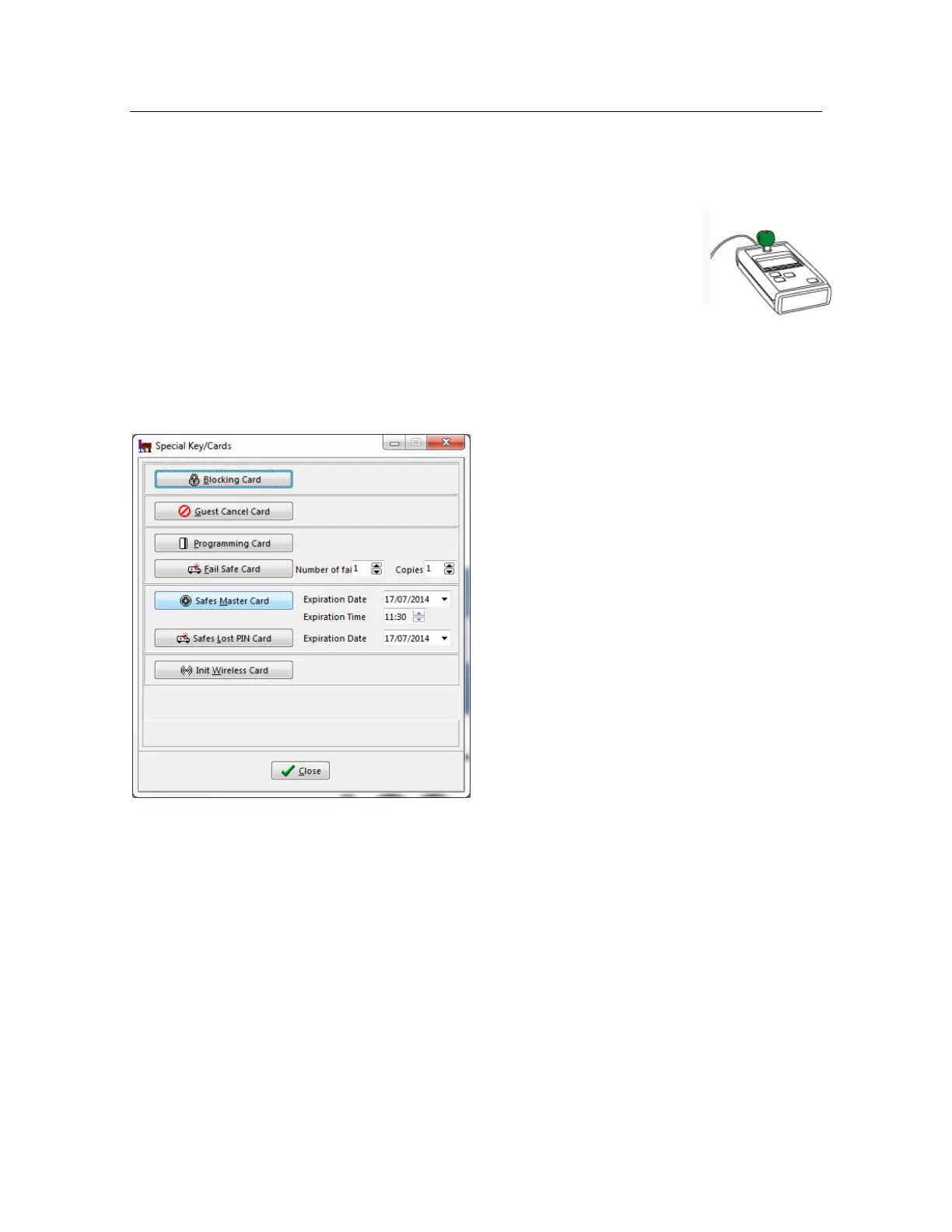 Card”. You have to encode this card in the reception (with an expiration date and time because