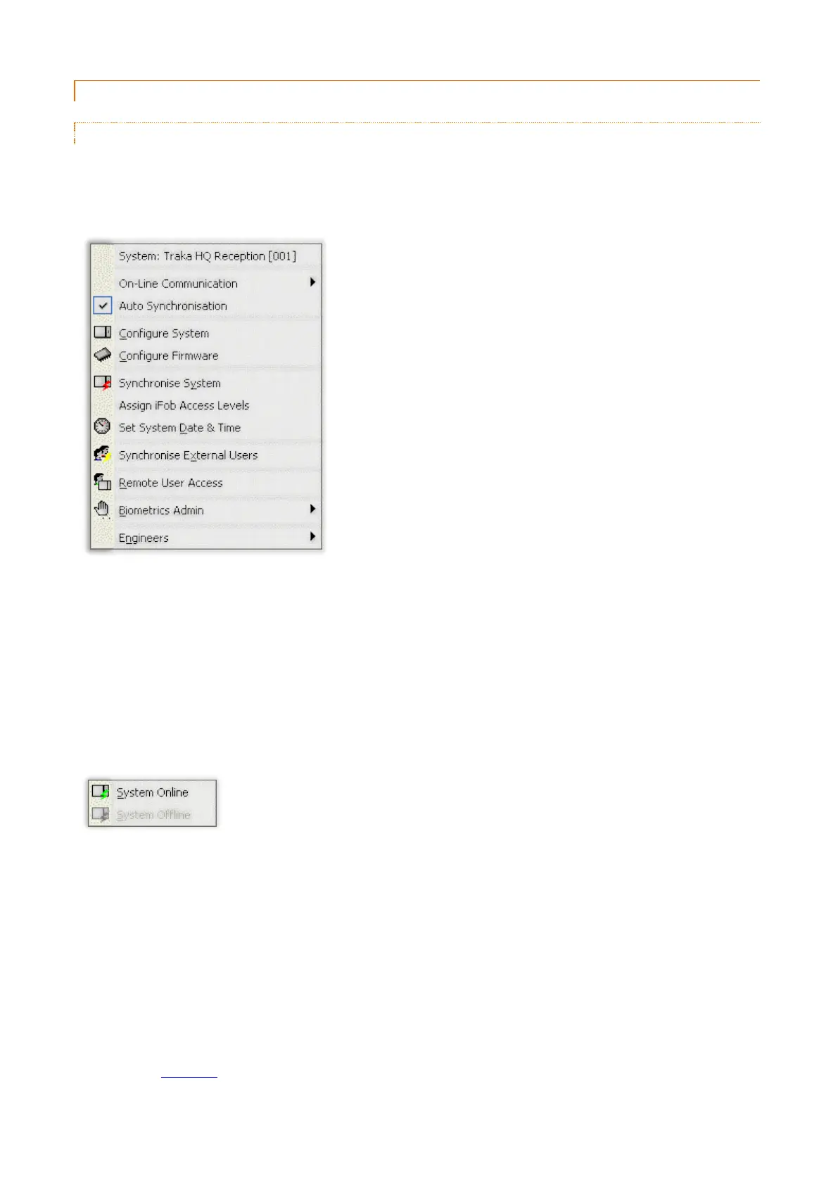 Clicking on this menu will toggle the system between Online and Offline. When online a system will send real time data