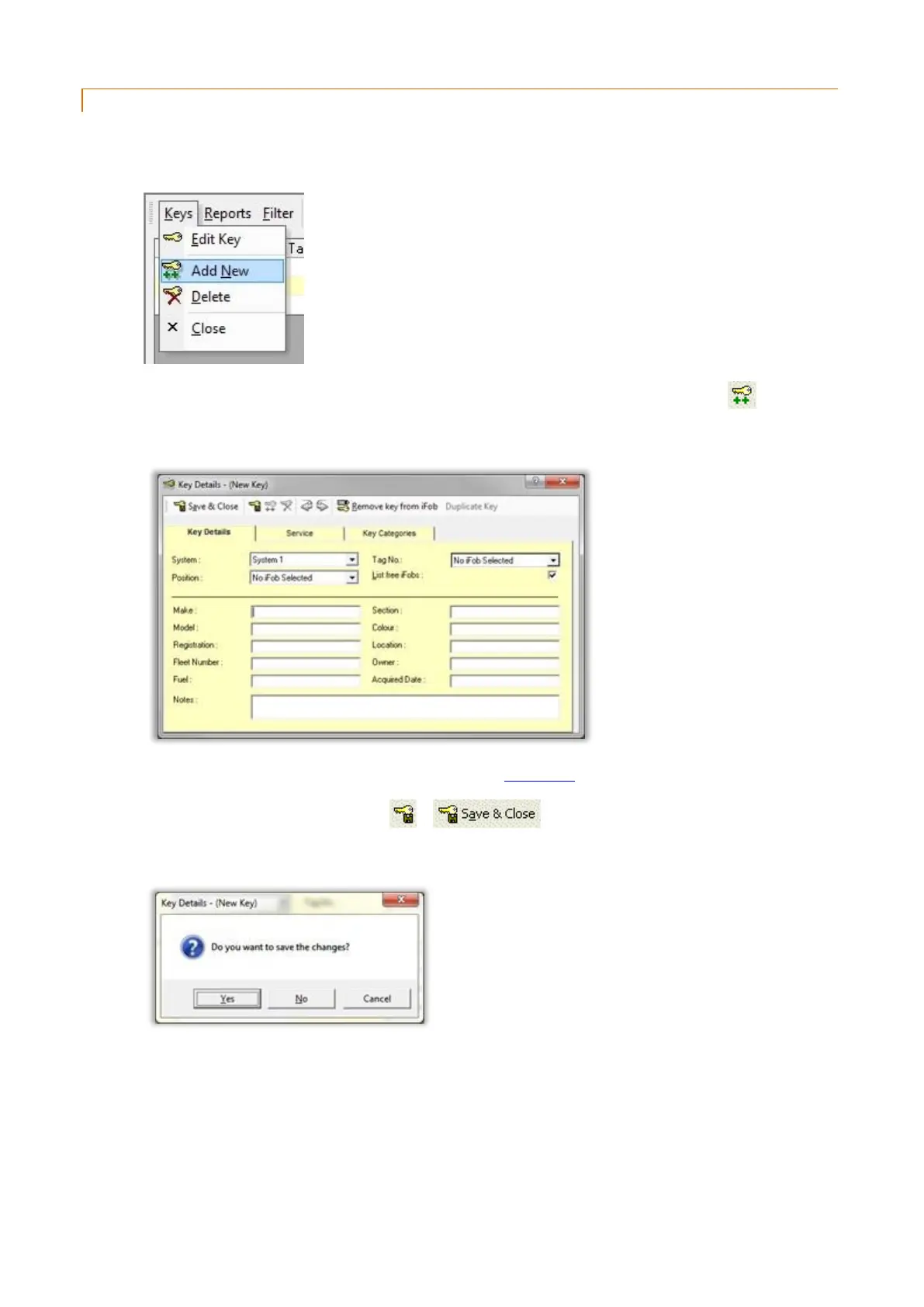 1. From the main screen click on Key List and a list of the current keys will be shown.