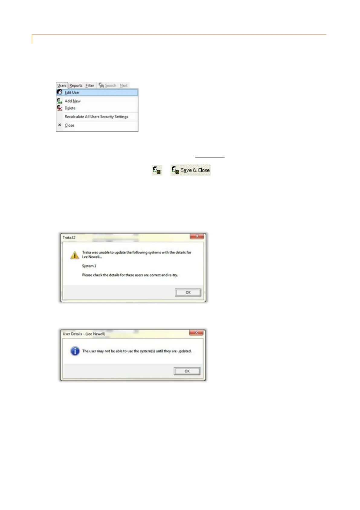 7. If you save your changes, the software will automatically update the Traka System when you save any user