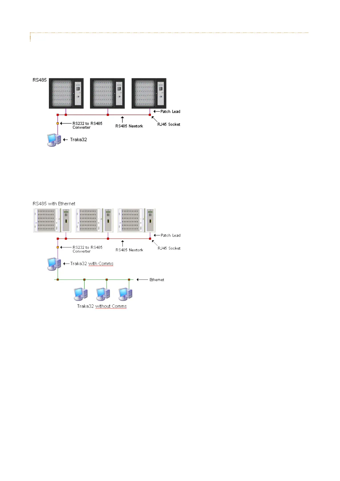 It is also possible to combine the RS485 communications with Ethernet to allow a single Traka32 client to administer