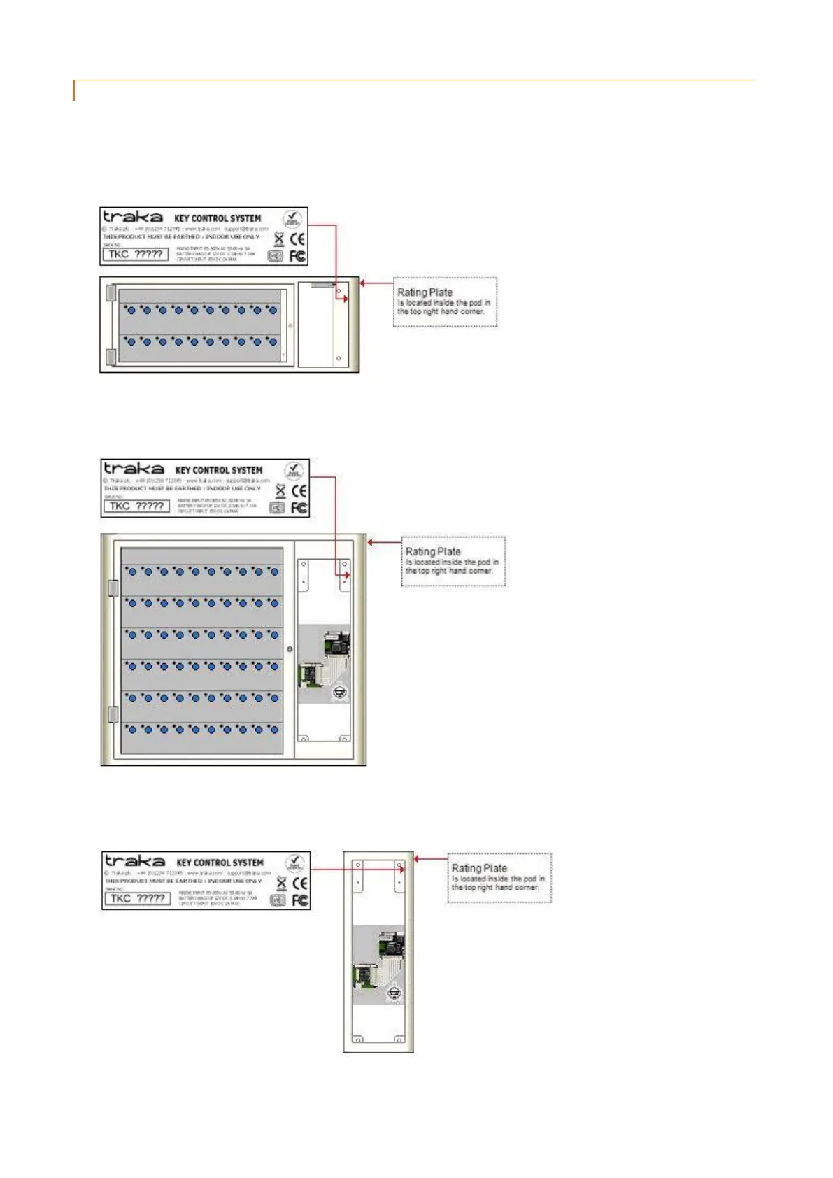 For Traka Products such as the L-Series, Lockers and Access control Pods, the Rating Plate is located inside the