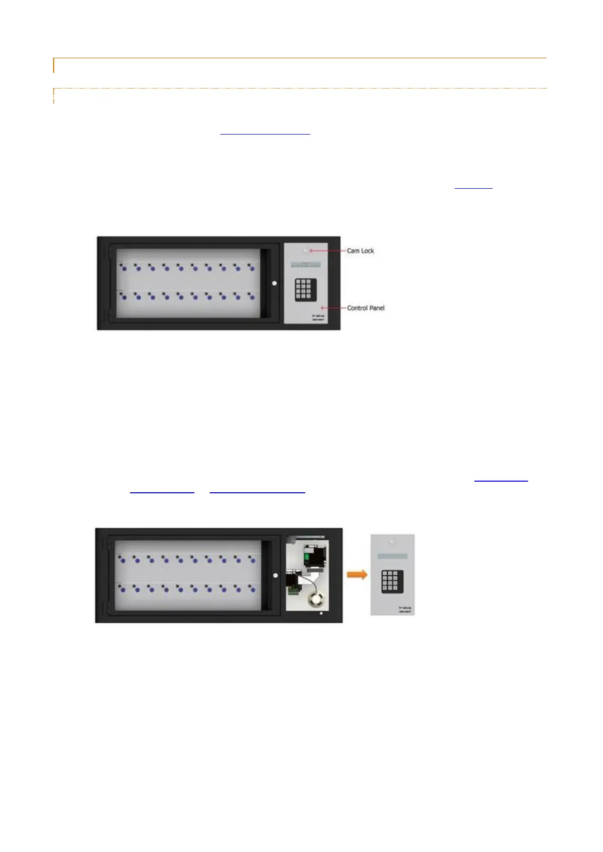 2. The Control Panel is hooked in at the bottom and locked at the top. Using the Master Key, unlock the Cam