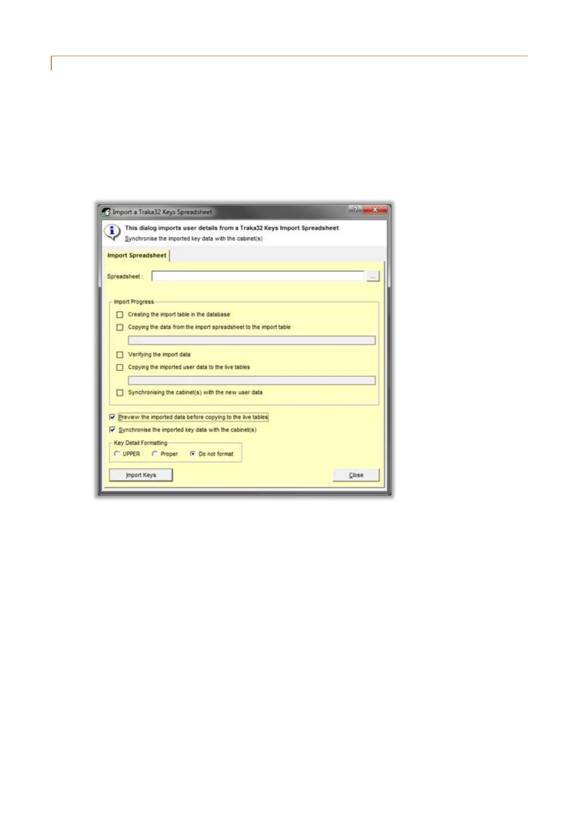 This utility allows key data to be imported from an Excel Spreadsheet into the Traka32 database. The Excel