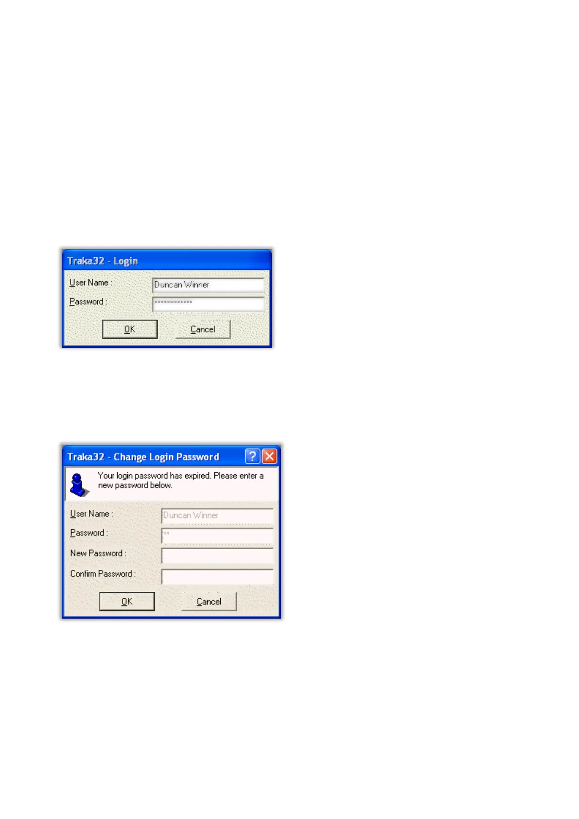 When a user logs into Traka32 and if their password has expired, Traka32 will prompt for a new password. Simply