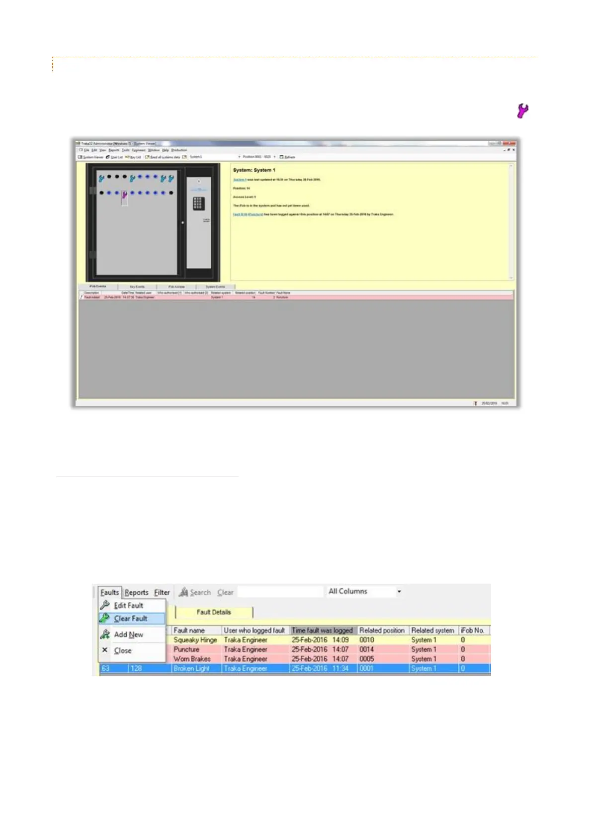 Faults can be cleared at the Traka system when returning the iFob, and can also be cleared or repaired from Traka32.