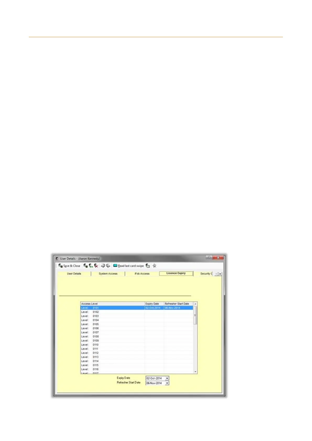 License expiry dates can be entered against the access level/Truck types 1-56 (Access Levels 101 – 156) from the