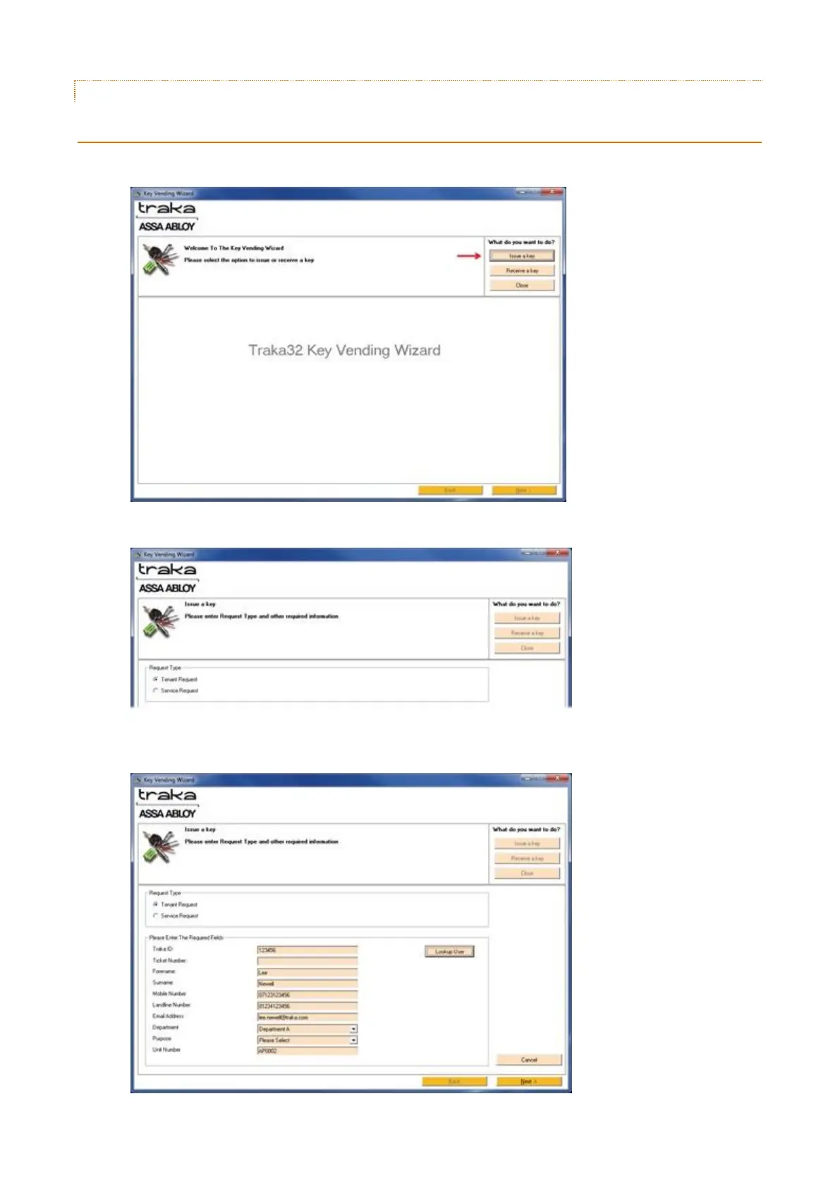 Database, the system will populate the fields with any details already entered in the User Record in Traka32.