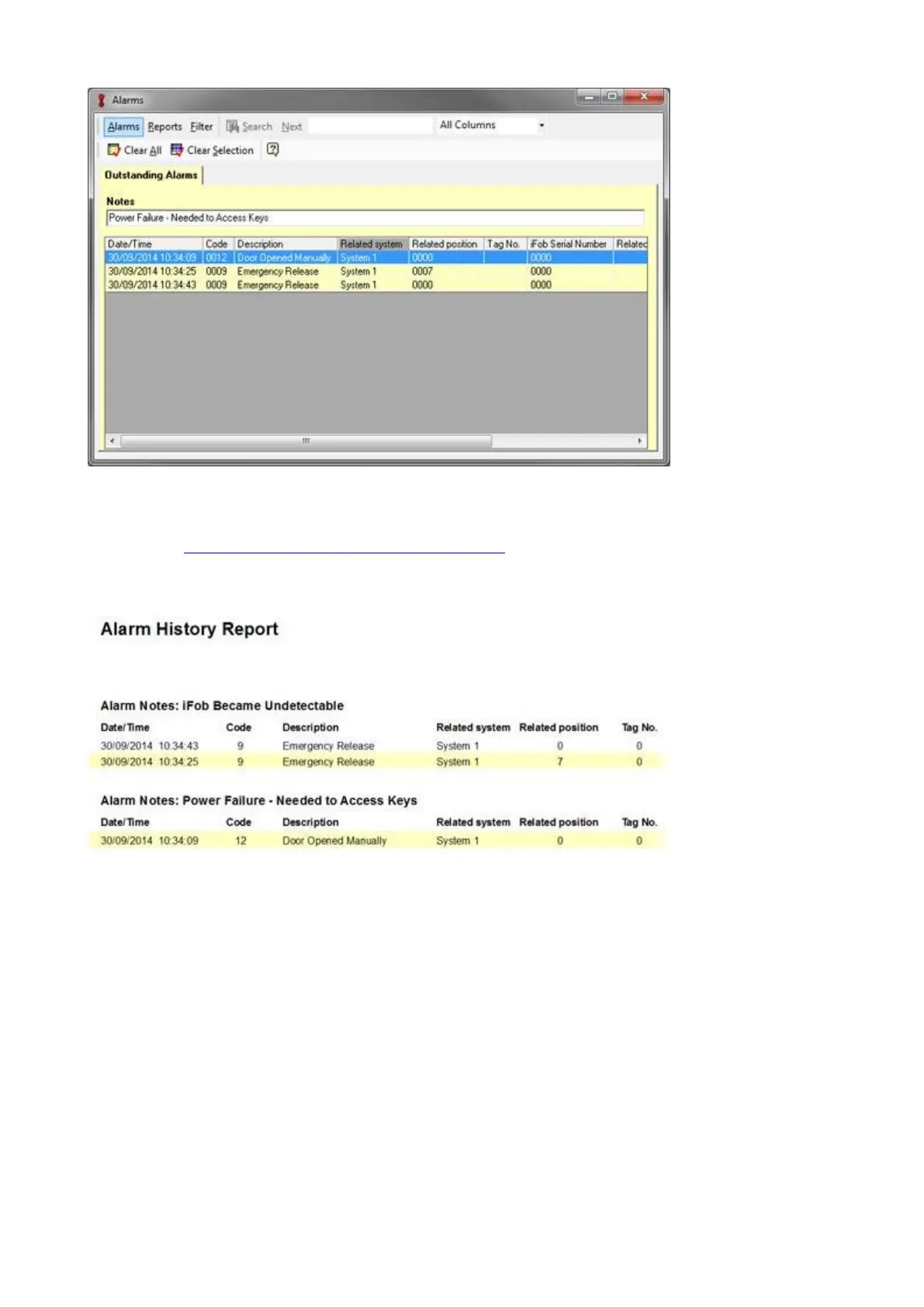 When alarms are cleared an audit is kept of when the alarms were cleared and who by. You can view this information