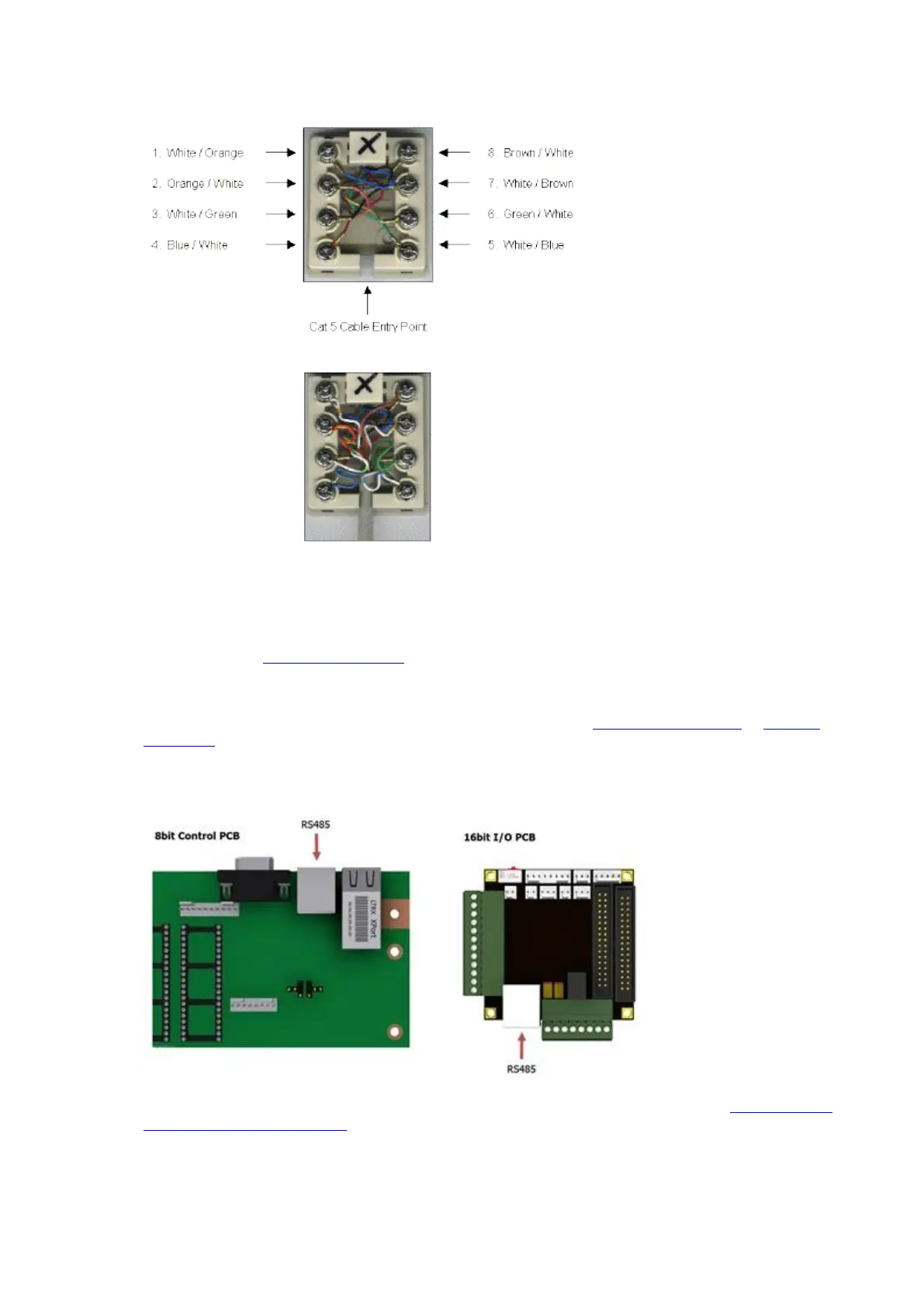 The diagram below shows the location of the RS485 Connector for both 8bit and 16bit systems.