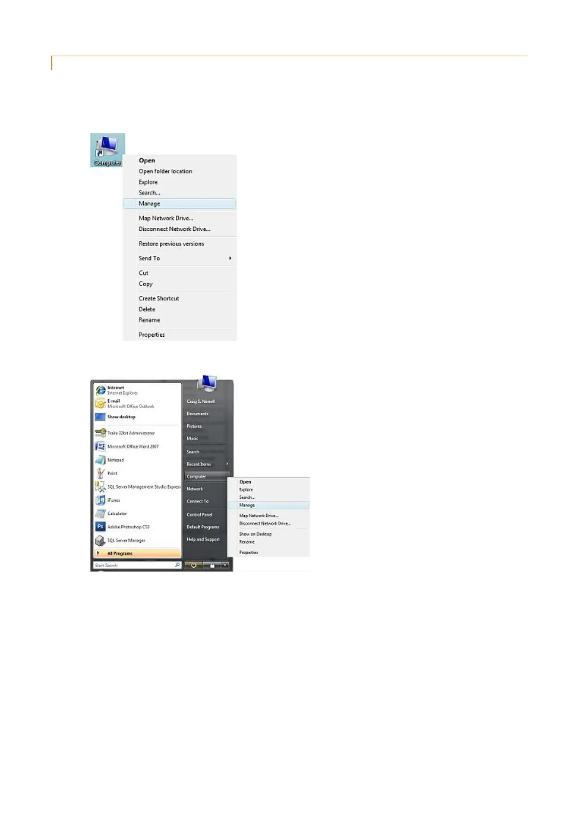 1. Right-clicking the My Computer icon.