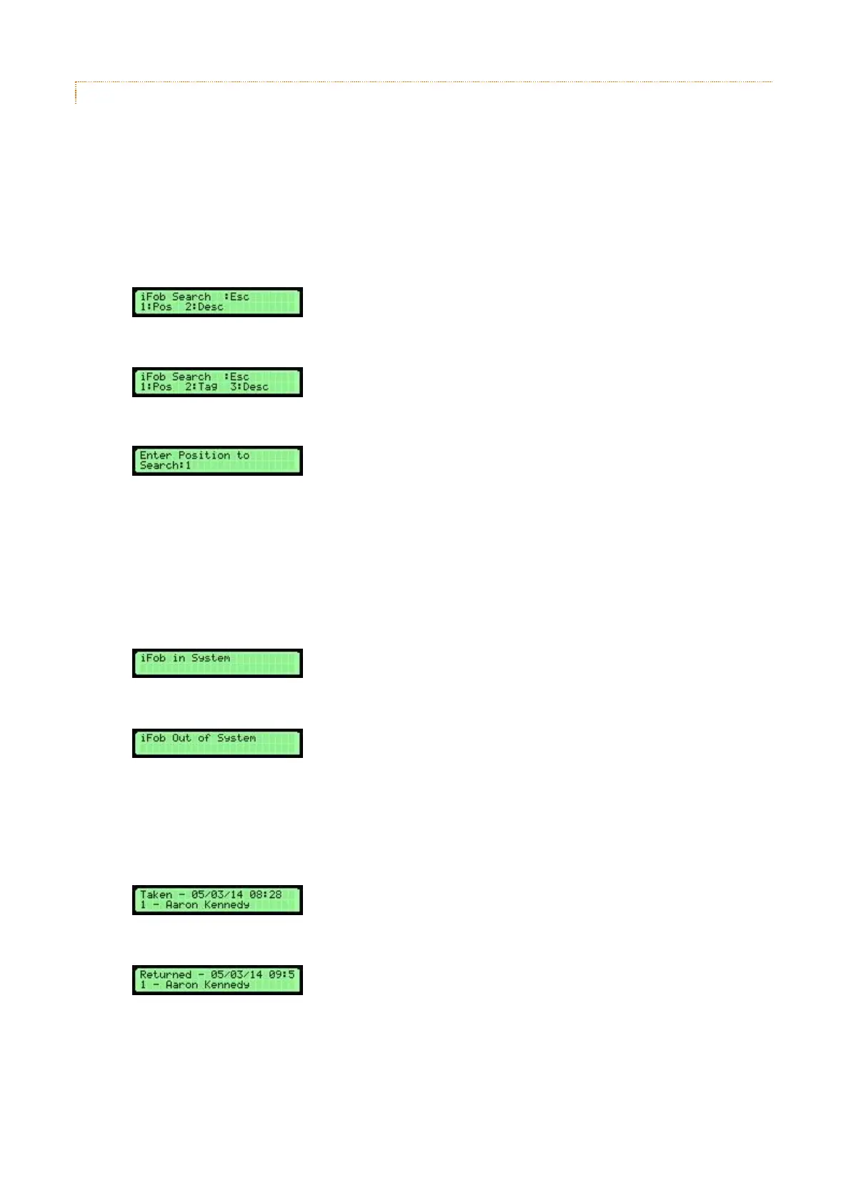 The iFob position search enables a user to search by a physical position within the system. This search is useful if