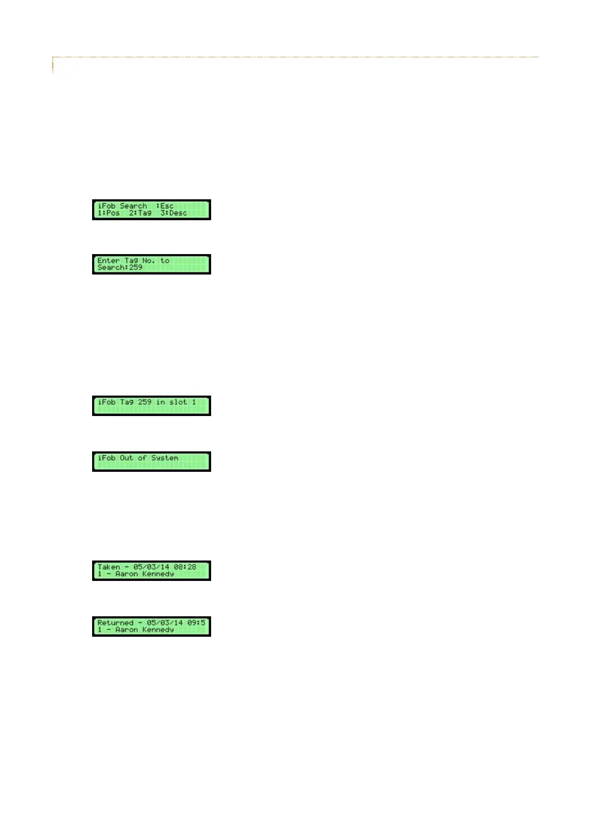 The iFob tag search enables a user to search by an iFob tag number. This search is useful if there is an unlabeled iFob