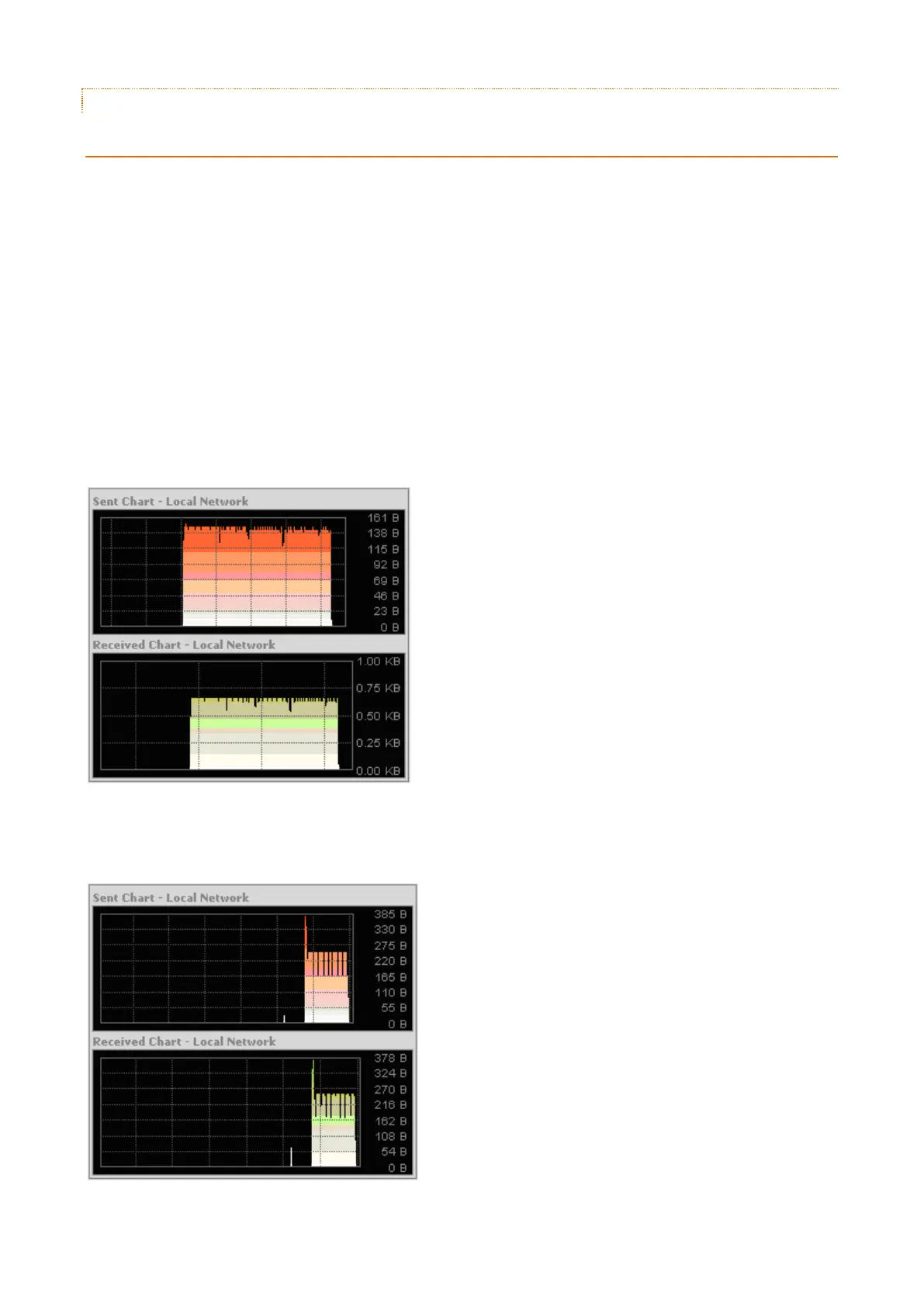 This is the most common communication averaging 670 bytes per second. The graph shows the downloading of 2000