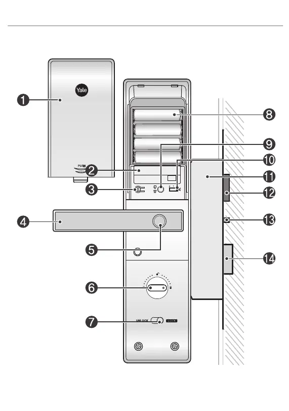 1. Front Body (Front Body, installation on the outside of the door) 4. Main Body (Main Body, installation on the inside of the door)