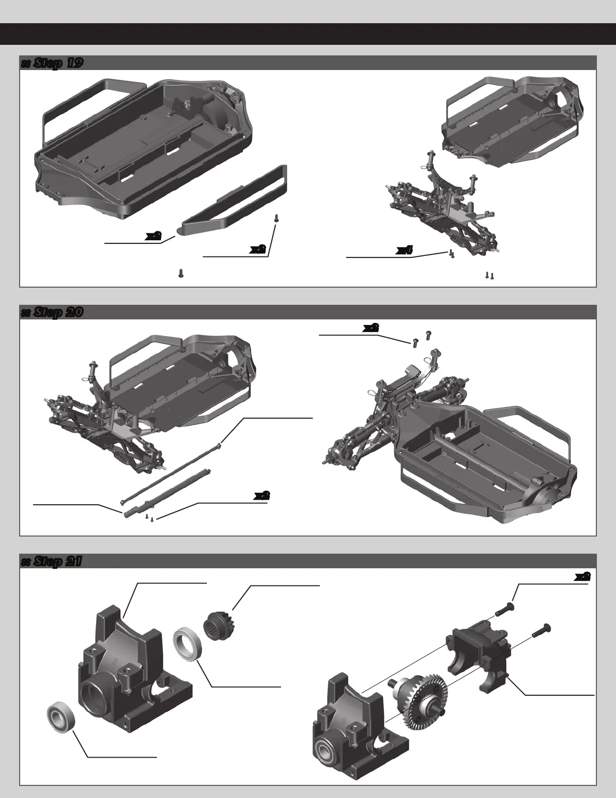 Associated Electrics PRO4 SC10 - Chassis, Drive Shafts, and Rear Gearbox; Step 19: Chassis Guard Installation; Step 20: Drive Shaft Installation; Step 21: Rear Gearbox Assembly