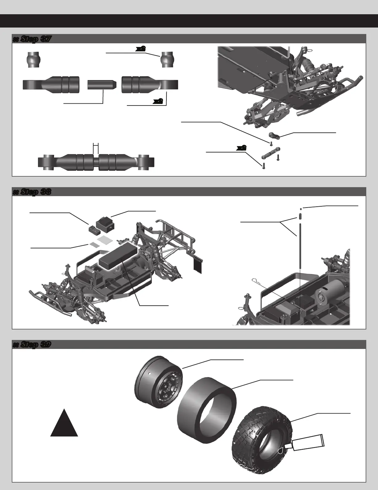 Associated Electrics PRO4 SC10 - Electronics and Tire Mounting; Step 37: Servo Link Turnbuckle; Step 38: Receiver and ESC Installation; Step 39: Tire Mounting