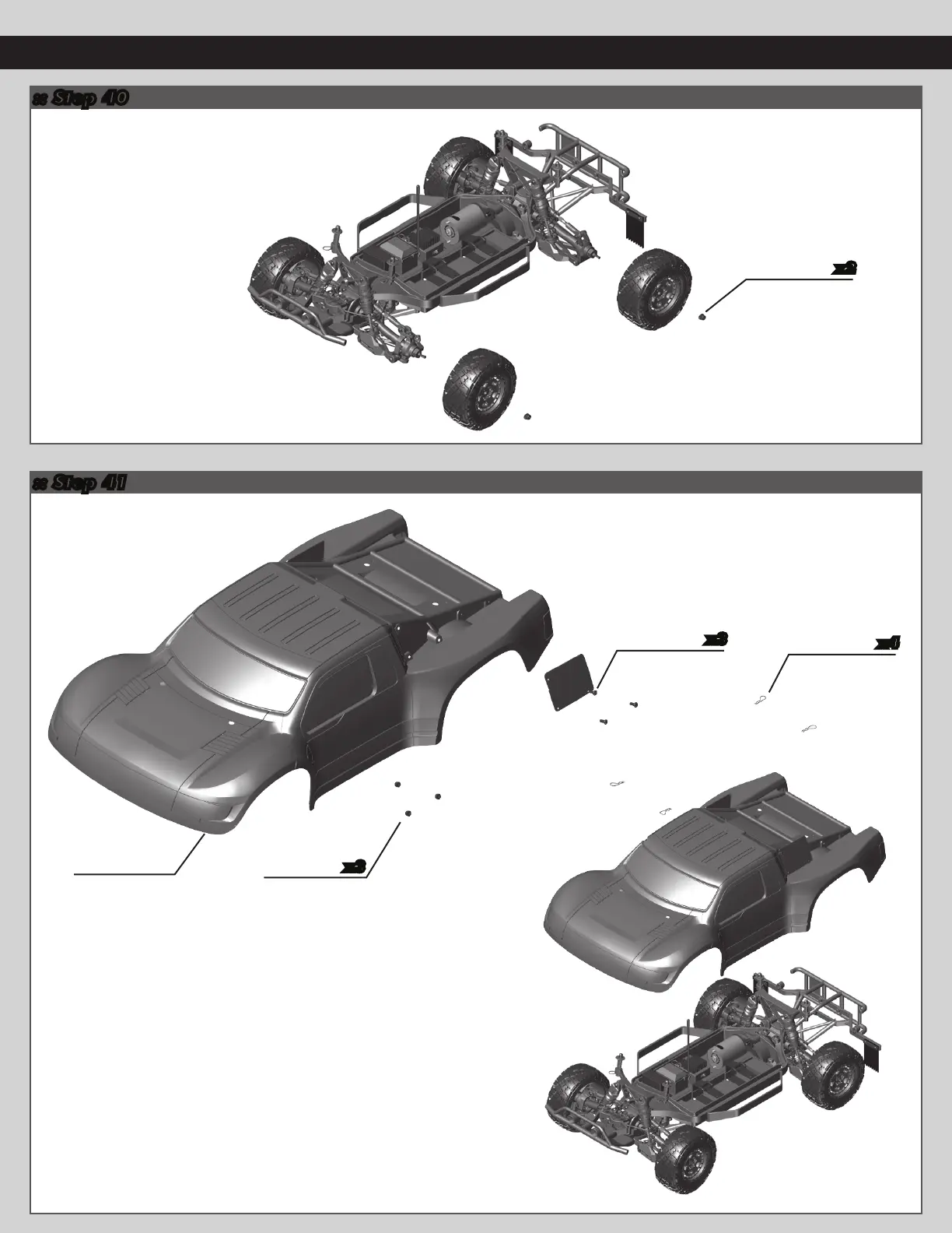 Associated Electrics PRO4 SC10 - Final Assembly Steps; Step 40: Wheel Installation; Step 41: Body Installation